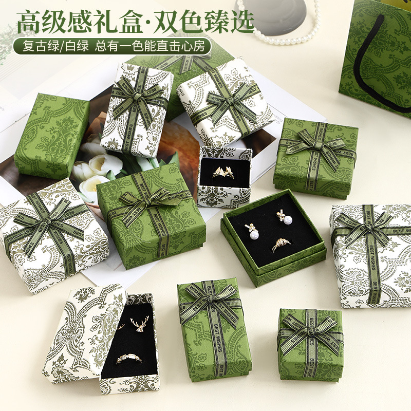 天地盖现货复古清新绿色首饰盒七夕情侣耳饰项链手镯首饰工厂直销