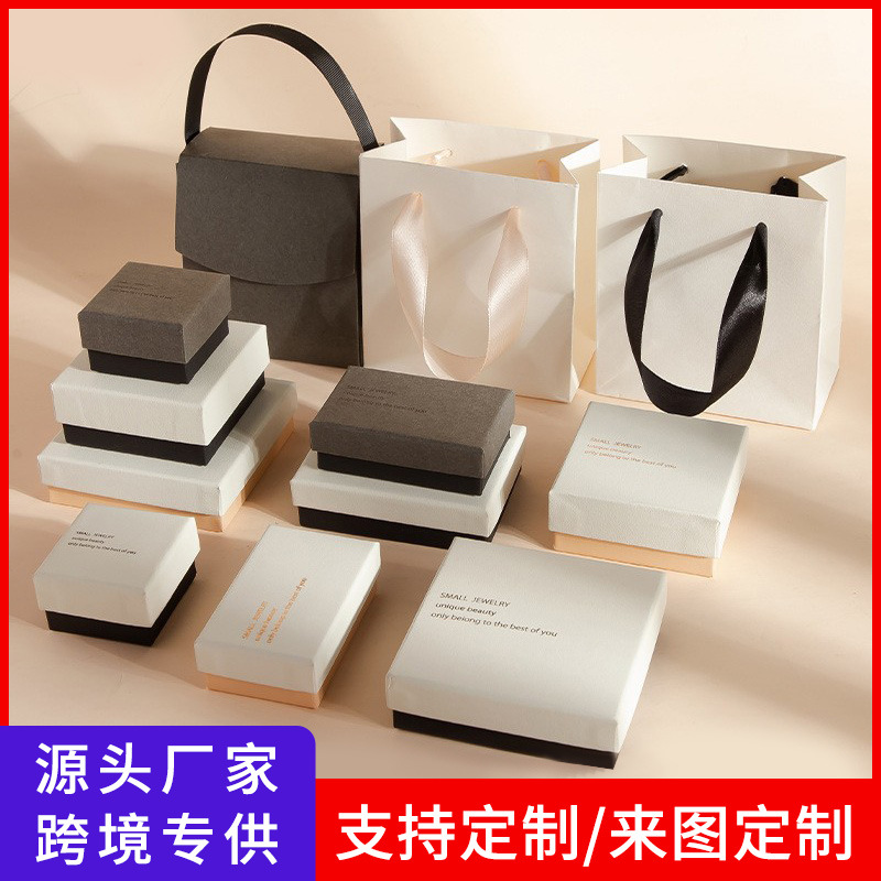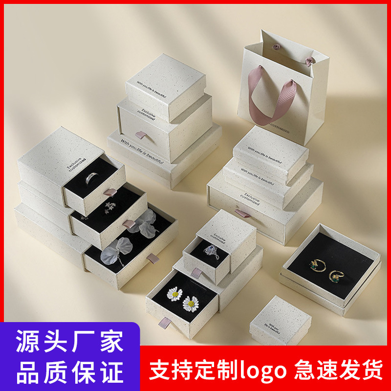 现货首饰包装盒再生纹理感轻奢天地盖项链戒指耳环抽屉盒工厂批发