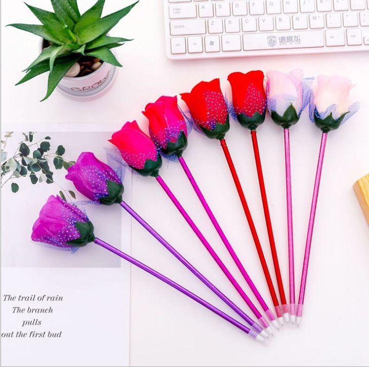 卡通 创意圆珠笔可爱玫瑰花圆珠笔卡通学生学习书写办公文具用品
