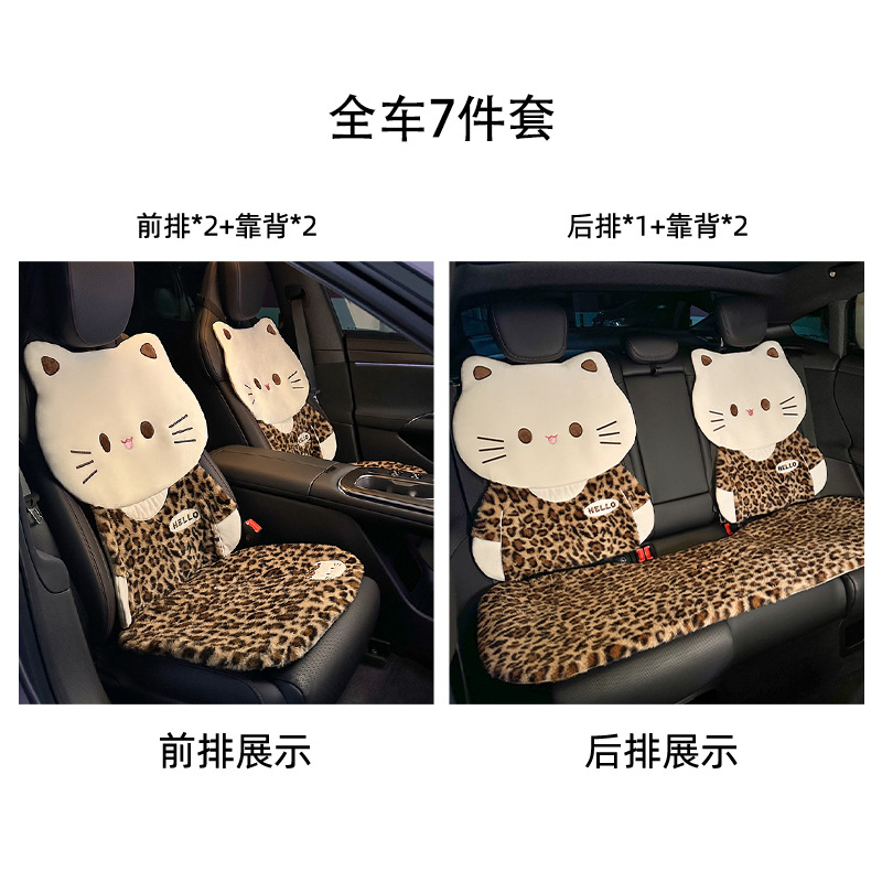 新款跨境豹纹汽车坐垫冬天保暖加热毛绒车用座椅套秋冬季车载座垫