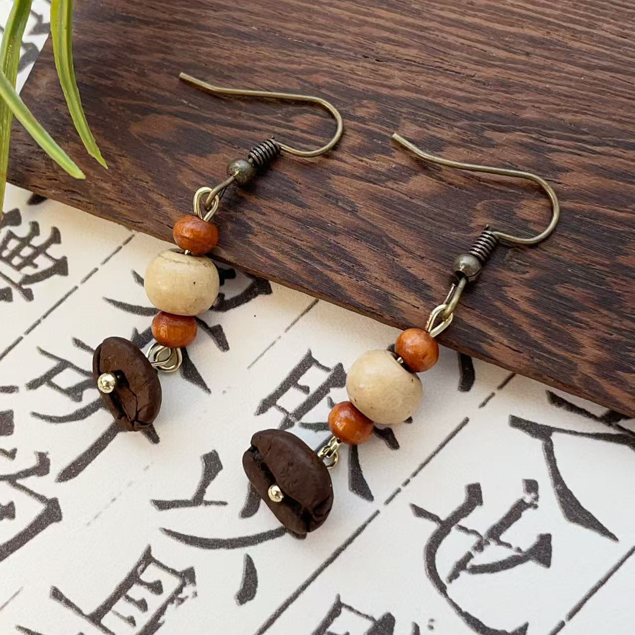 复古手作植物果实耳环森系咖啡豆文艺民族风小众创意耳坠耳饰批发