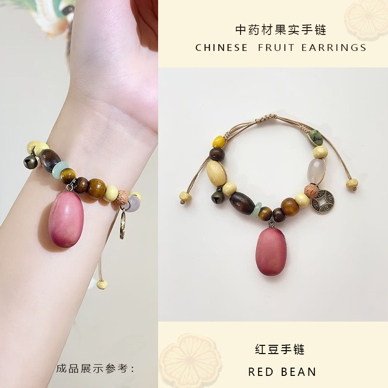 原创中药手串天然果实植物红豆手工编织手绳森系文艺女款手链批发