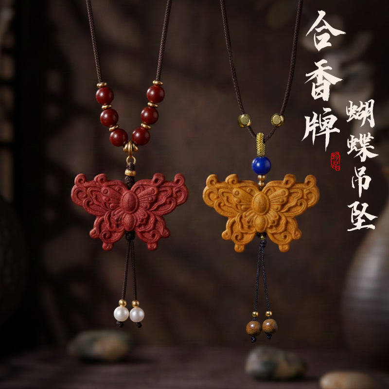 现货批发古法蝴蝶脖挂草本香材吊坠车载包配饰女天然药材合香牌女