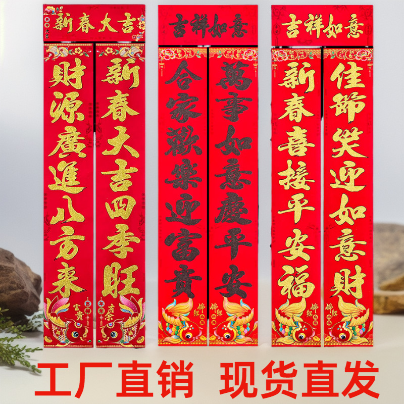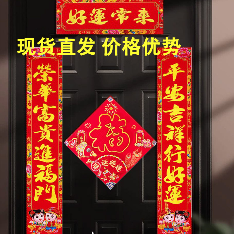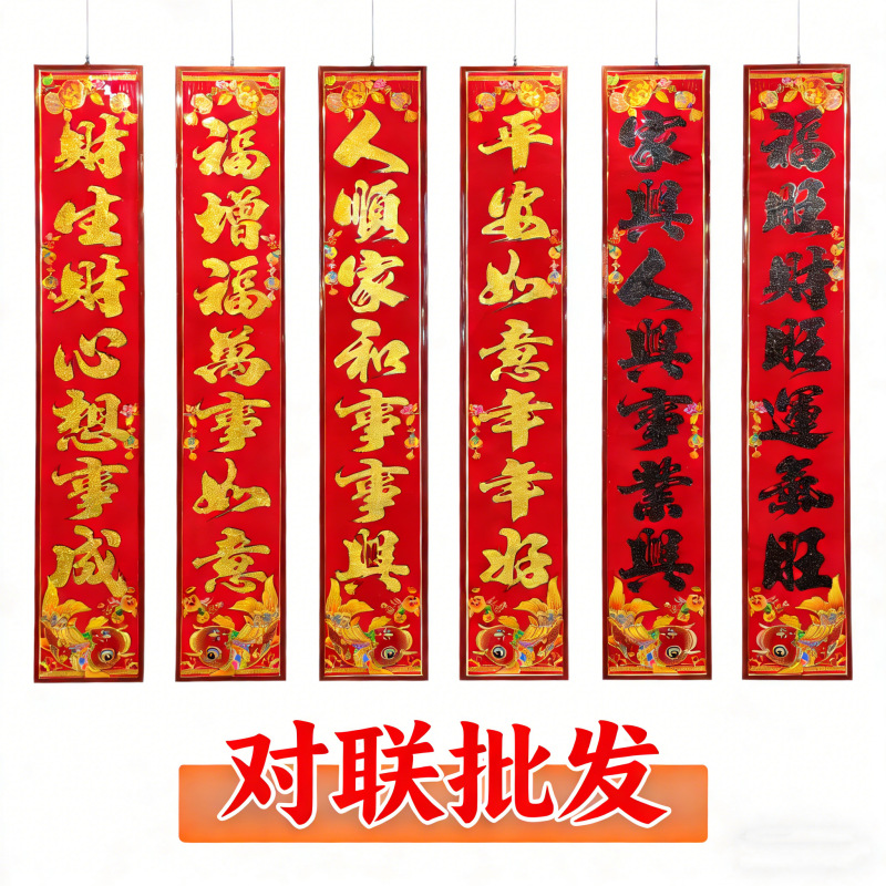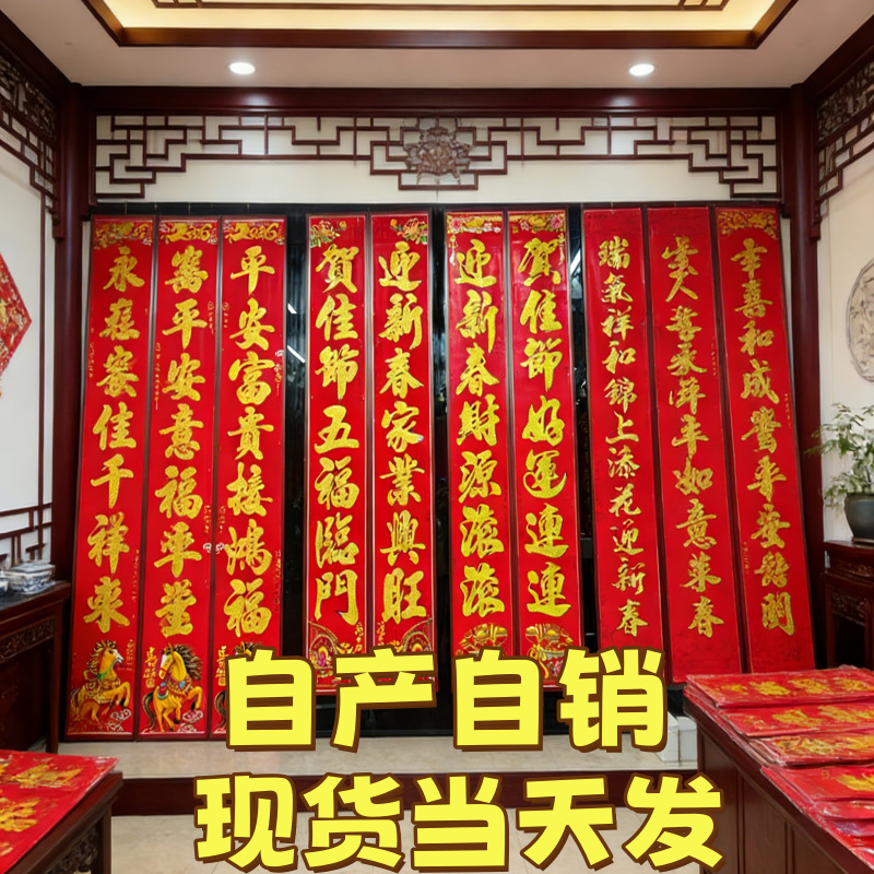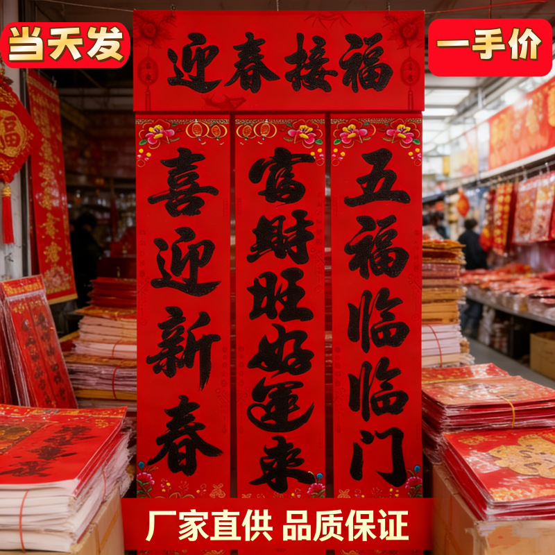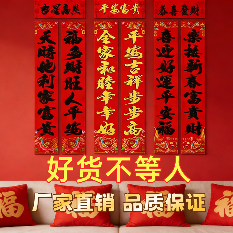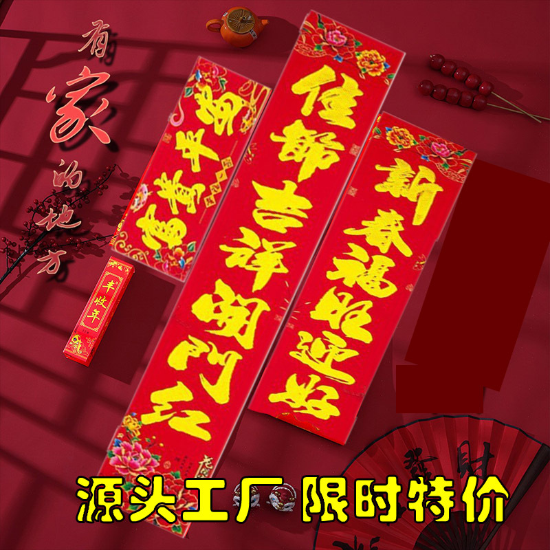2026厂家直销春节对联高档植绒过年家用装饰门贴春联年货批发货源