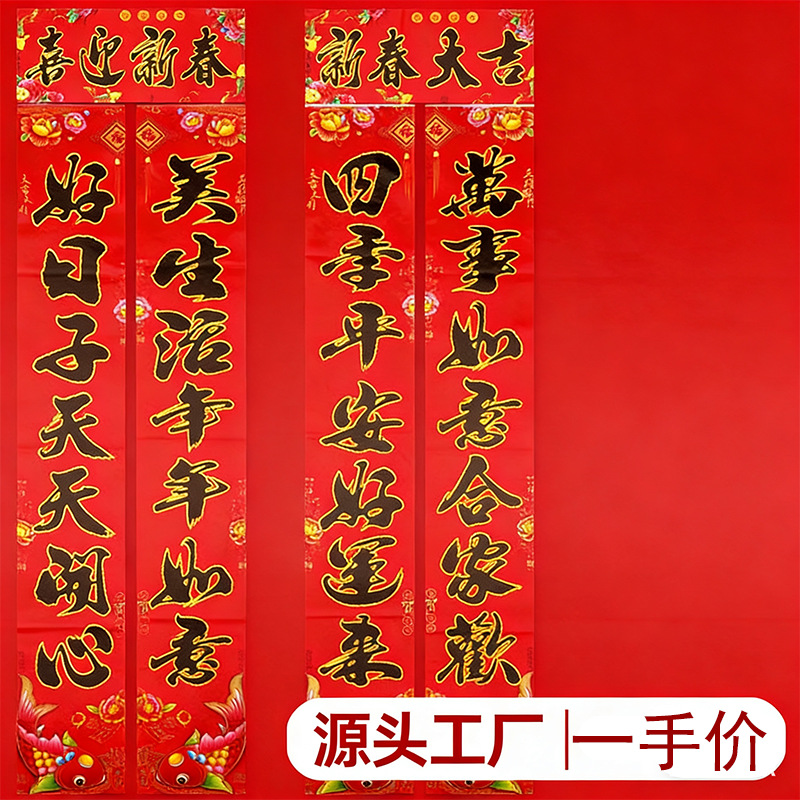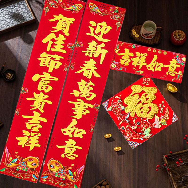 2026马年对联批发新款植绒铜版纸对联盒装鱼版春联春节用品厂家