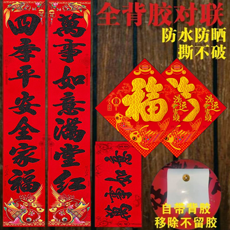 厂家直销批发春节用品春联大礼包烫金植绒条胶背胶广告对联红包福