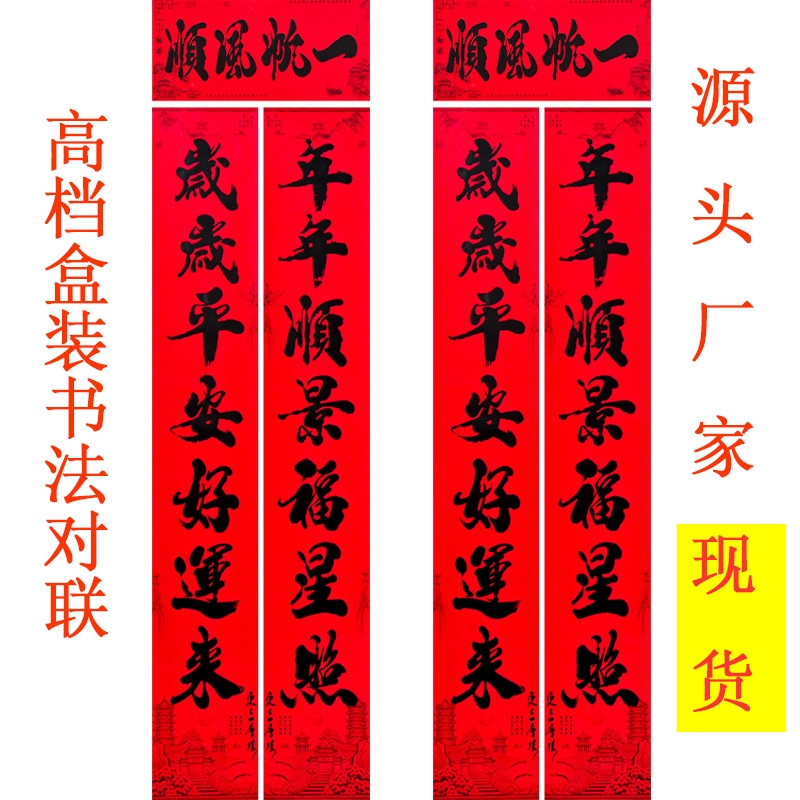 春联厂家2026马年对联批发铜版纸烫金春节用品对联盒装植绒书法背