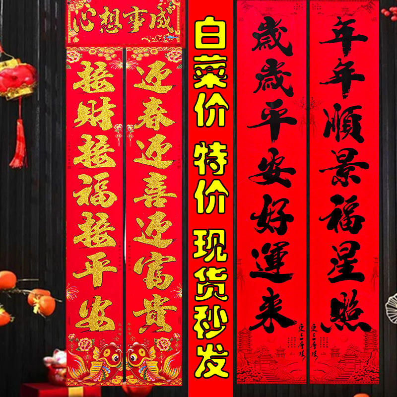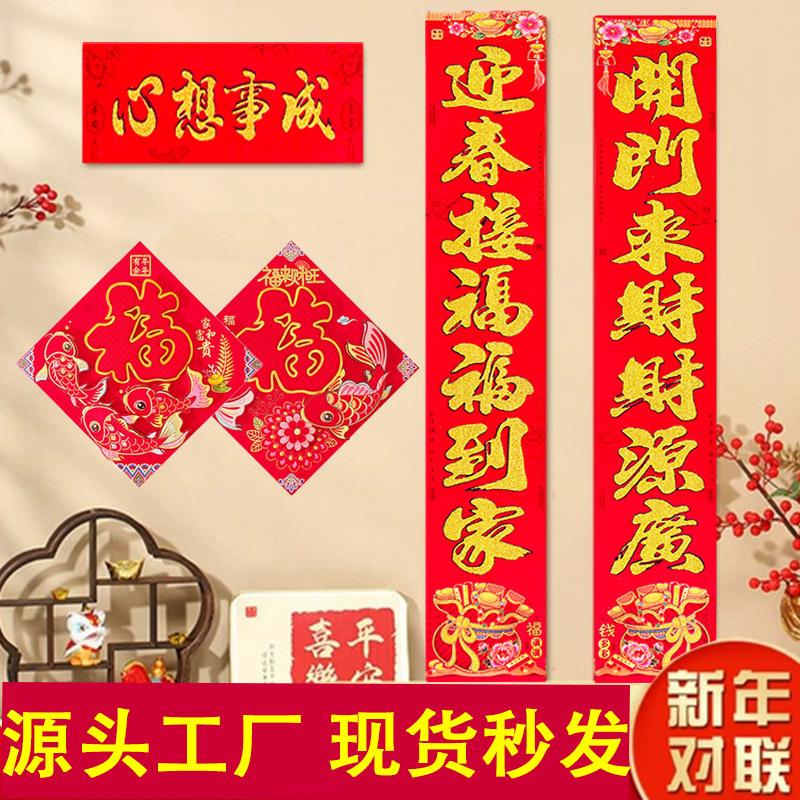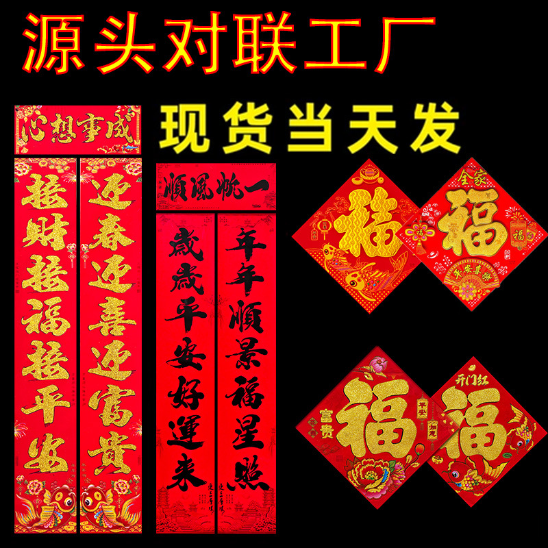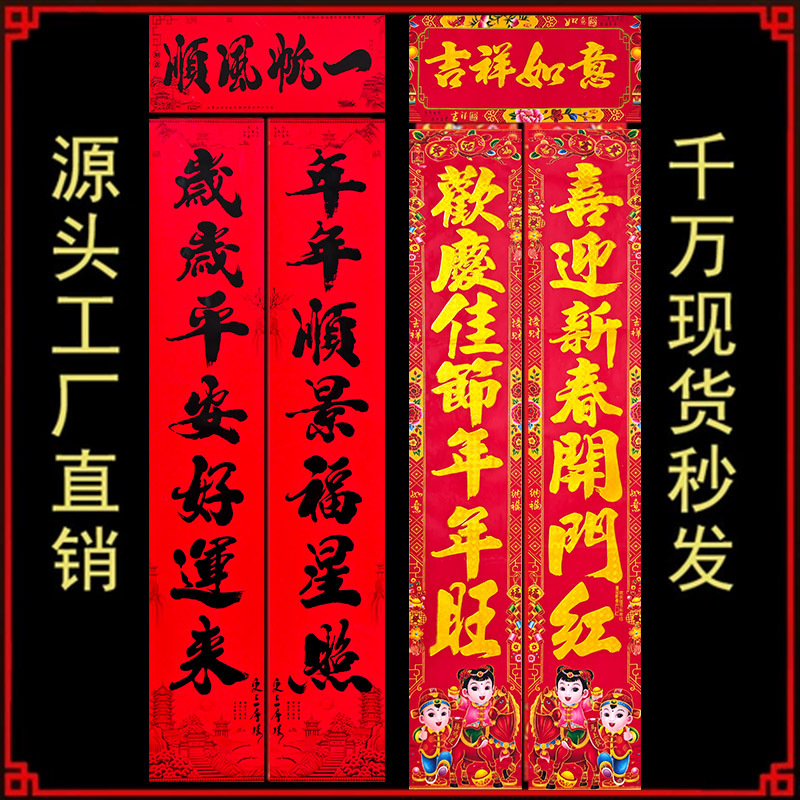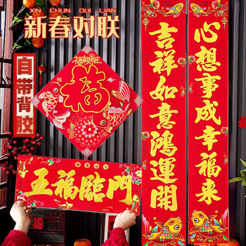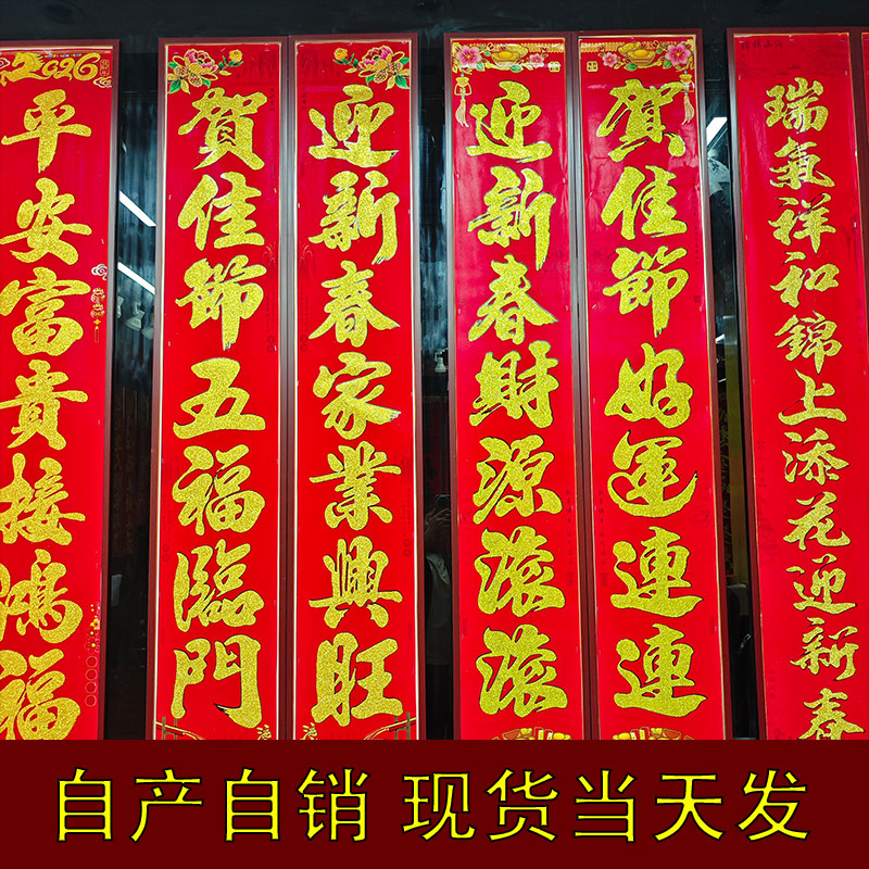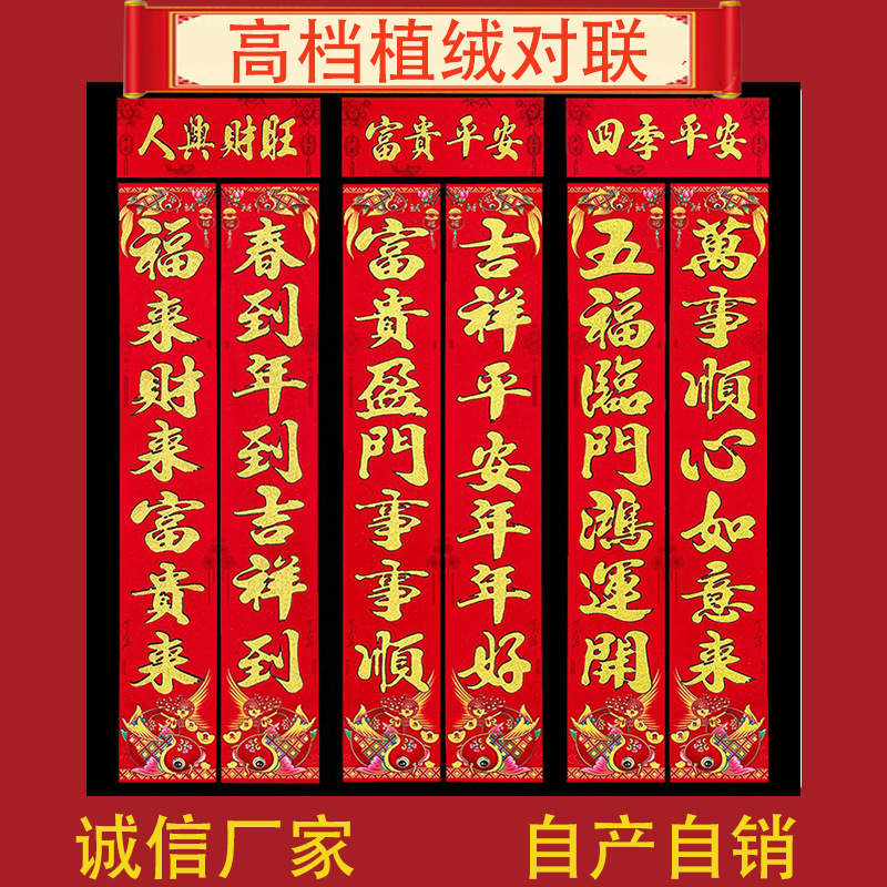 对联新款对联批货2026年绒布全背胶自粘门联春联节用品批发新款
