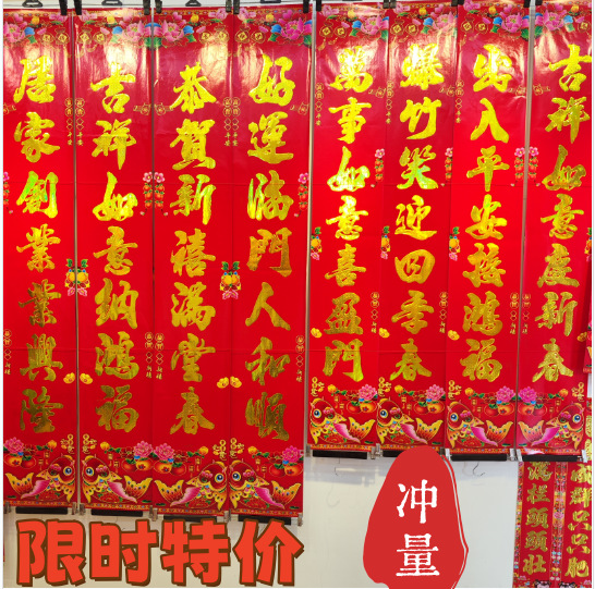 对联批发新春高档烫金对联大门春联年货新年对联门画对贴条幅绒布