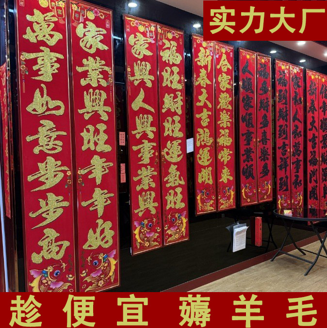 对联批发厂家2026年新款新年条幅挥春春节高档植绒对联布置珲春