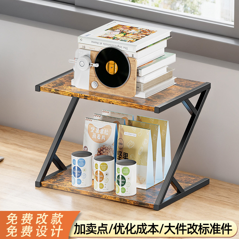 跨境简易铁木桌面置物架工位水杯茶具收纳架家用书桌文件小型书架