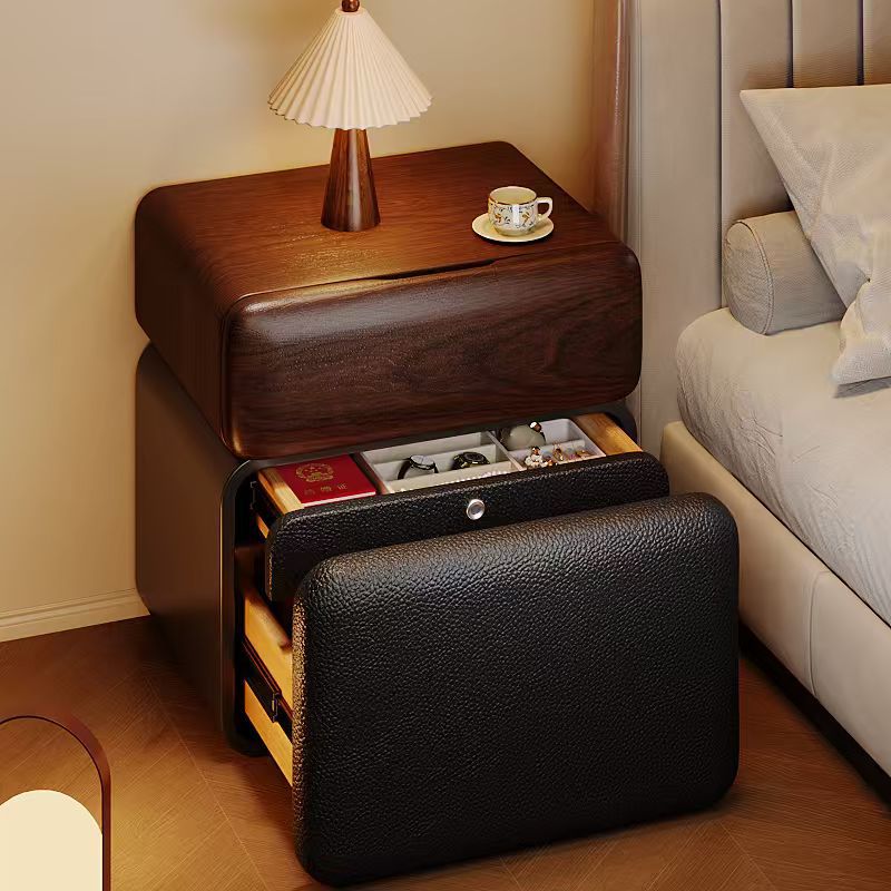 保险柜床头柜一体现代简约卧室智能床边轻奢岩板家用带锁储物柜子
