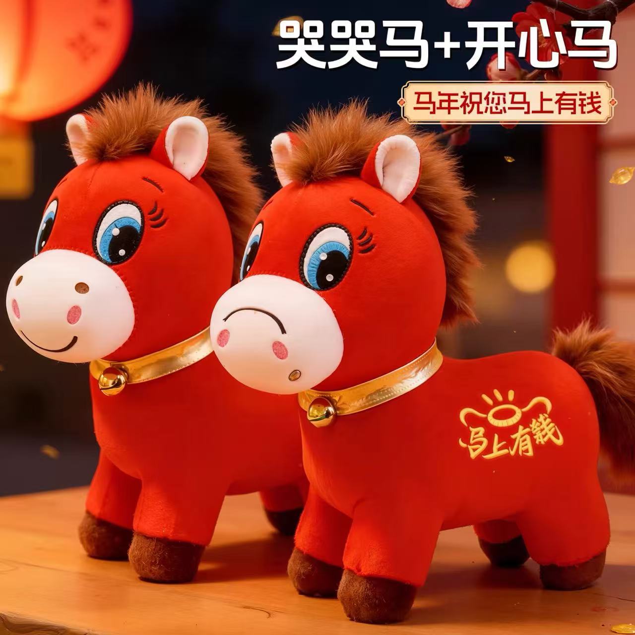 哭哭马笑笑马年吉祥物生肖马毛绒玩具可爱小马玩偶摆件礼品定LOGO