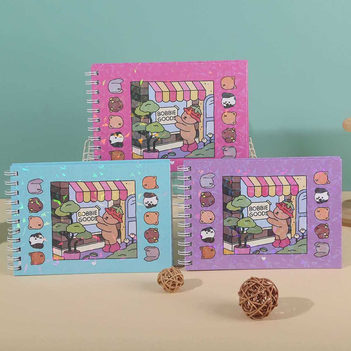 跨境专供快乐萌友记卡通pet创意贴纸儿童手账素材diy镭射贴画批发