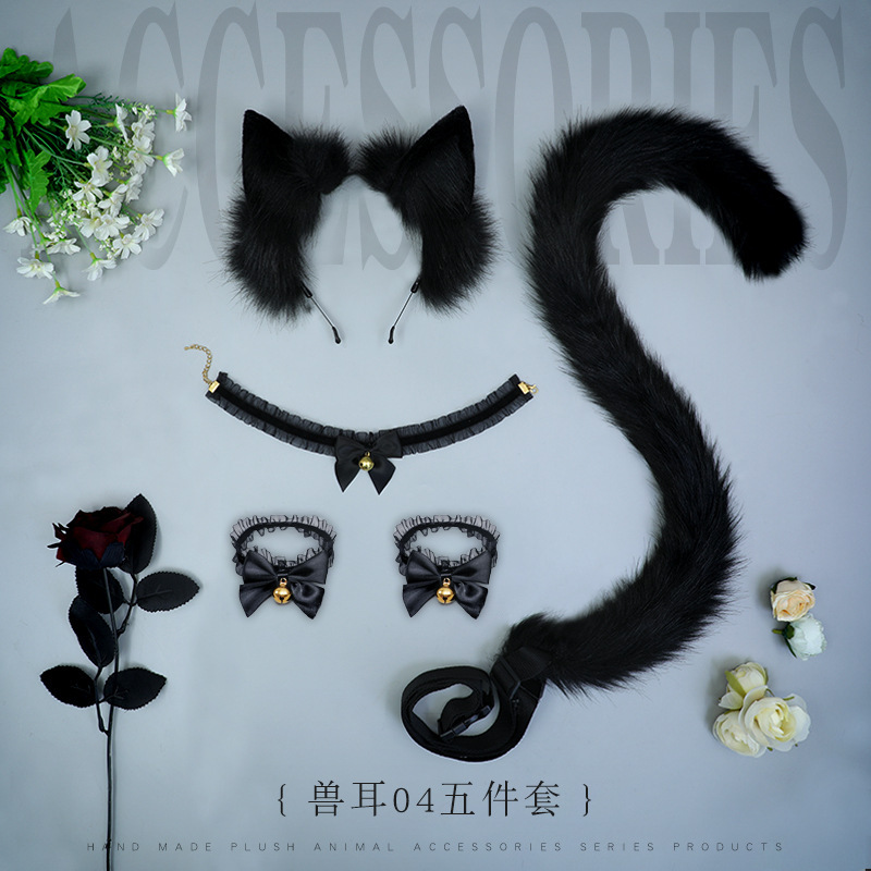 仿真兽耳兽尾套装蕾丝手铃脖铃现货毛绒cosplay道具头饰发饰发箍