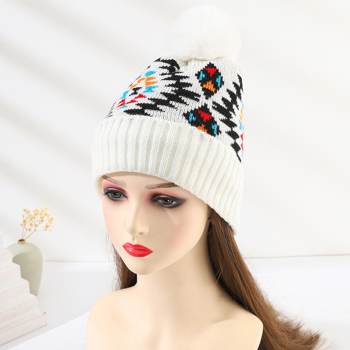 中老年人围脖帽冬天针织毛线帽女妈妈防寒兔毛保暖帽老太太针织帽
