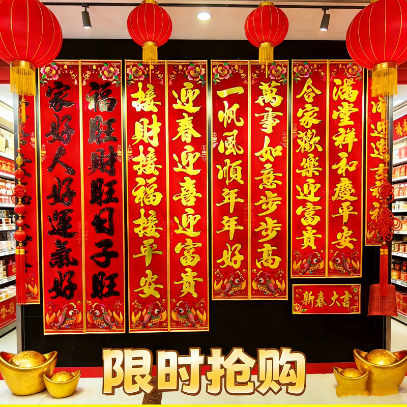 厂家直销新款高档纸质烫金挥春精品竖联春条春节用品 晖春春条批