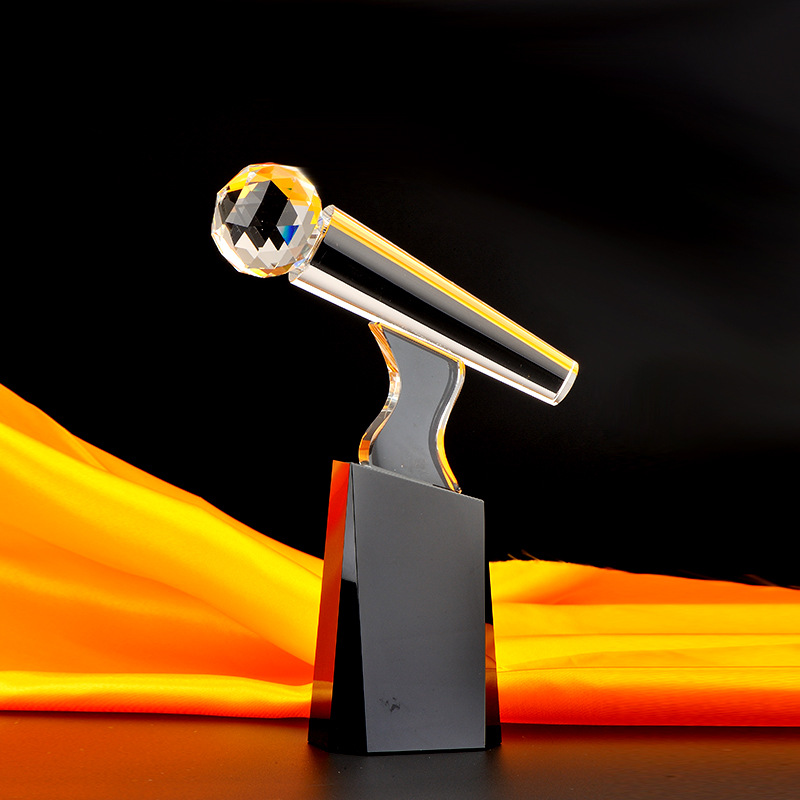 创意水晶奖杯主持演讲唱歌比赛话筒音乐奖杯各种赛事活动奖杯定制