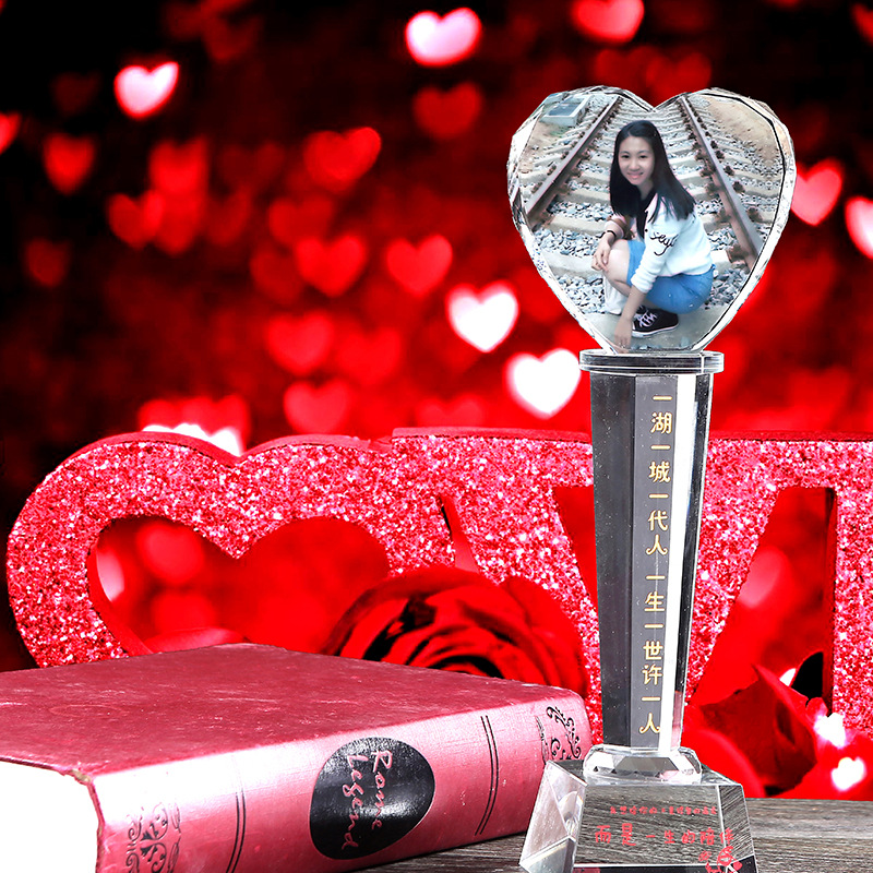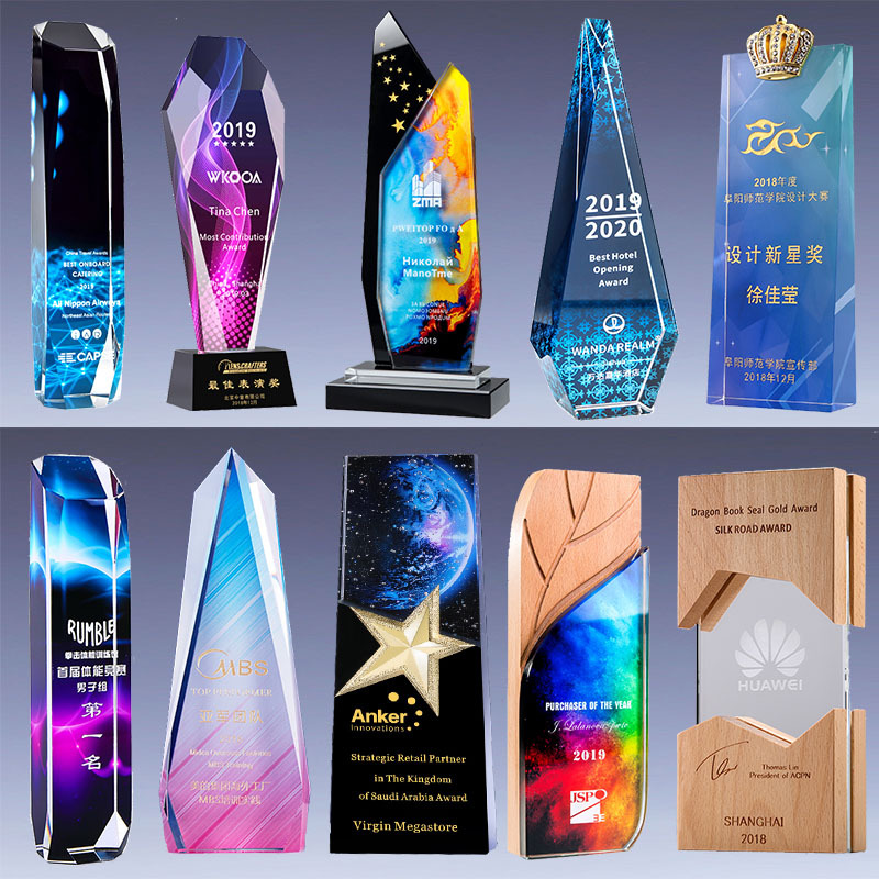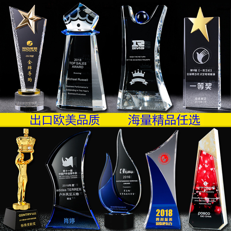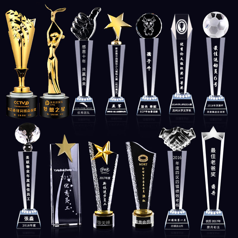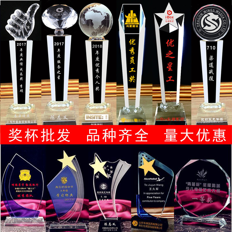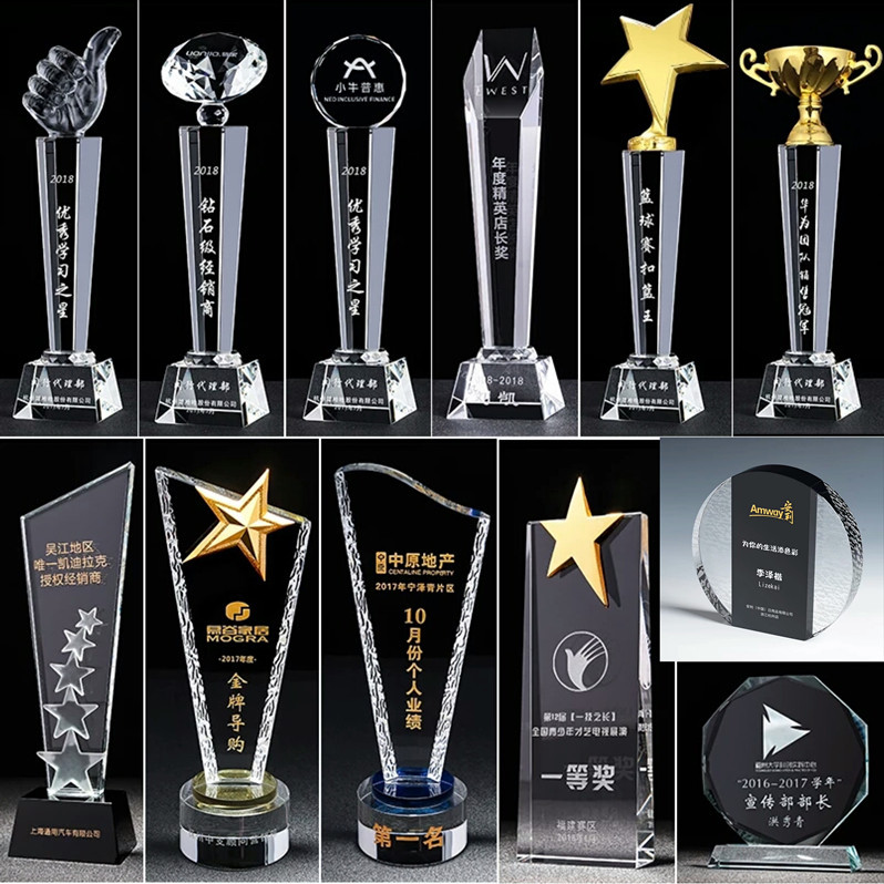 水晶奖杯照片定制 优秀员工表彰 奖杯奖牌相片制作 创意礼品刻字