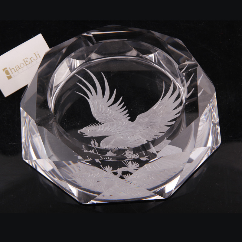 八角深雕水晶烟灰缸 摆件定制 手工雕刻 k9料烟缸批发时尚个性礼