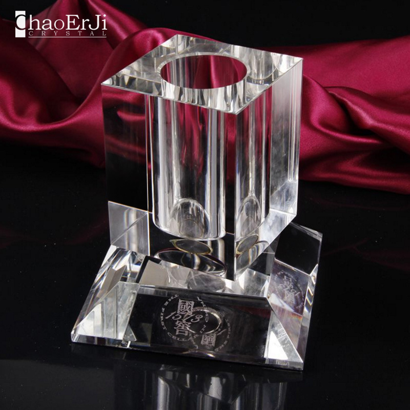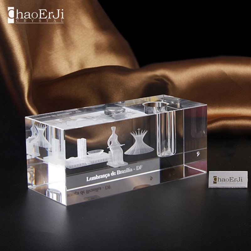 定制水晶方体3d激光内雕工艺品摆件 办公学校用品 带笔插纪念品