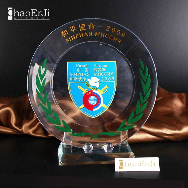 〖厂家专业定制〗水晶月亮奖盘定做 周年纪念品摆件 logo图案加印