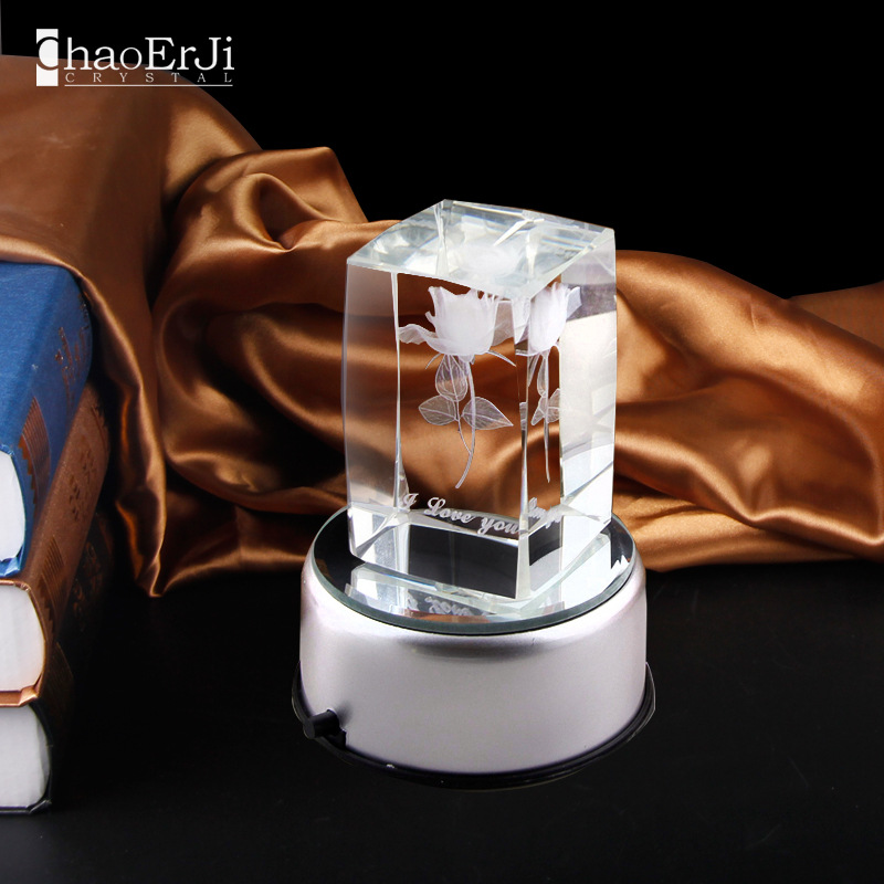 厂家批发水晶内雕玫瑰花 七夕情人节送女友礼物 圣诞节礼品可定制