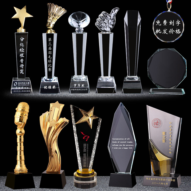 创意新款水晶奖杯奖牌定制五角星羽毛球篮球校运动会公司比赛颁奖