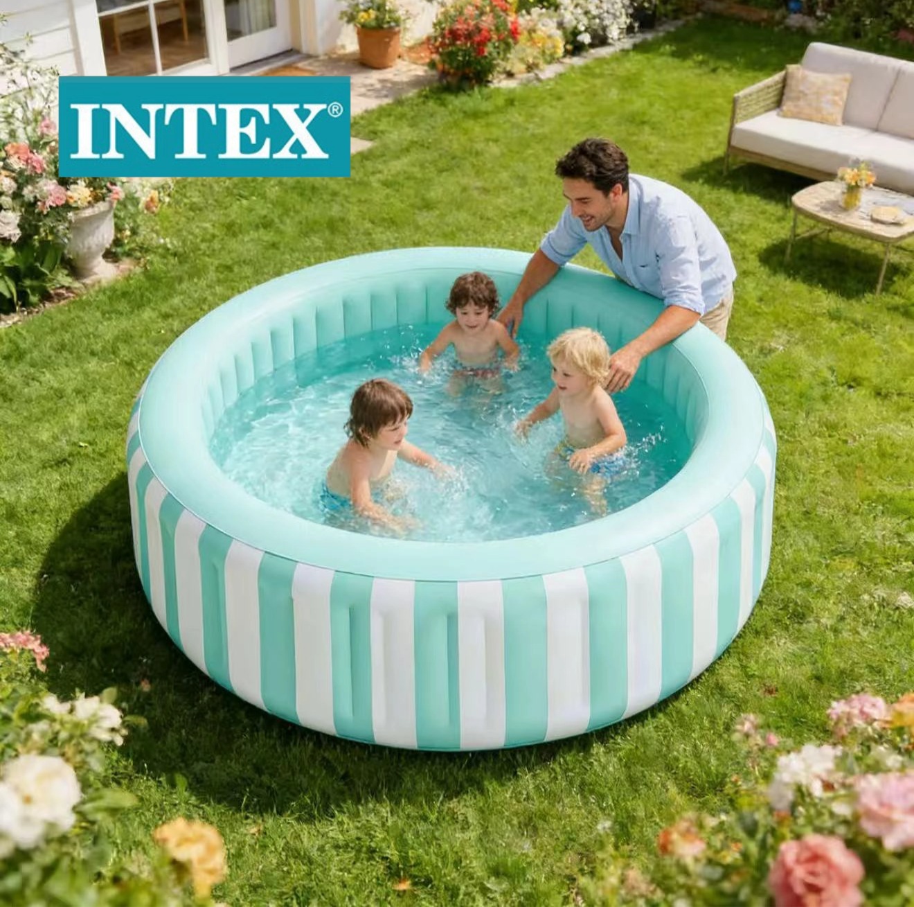 INTEX57177热带树叶长方形充气水池家居庭院游泳池儿童戏水池批发