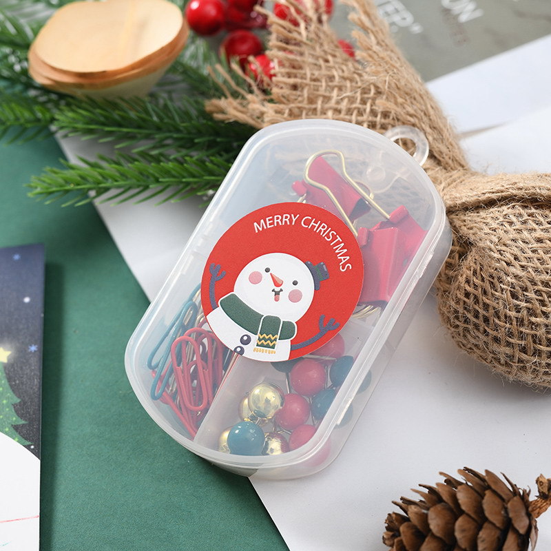 文创金色图钉绿色长尾夹红色回形针小三格挂盒圣诞小雪人礼品组合