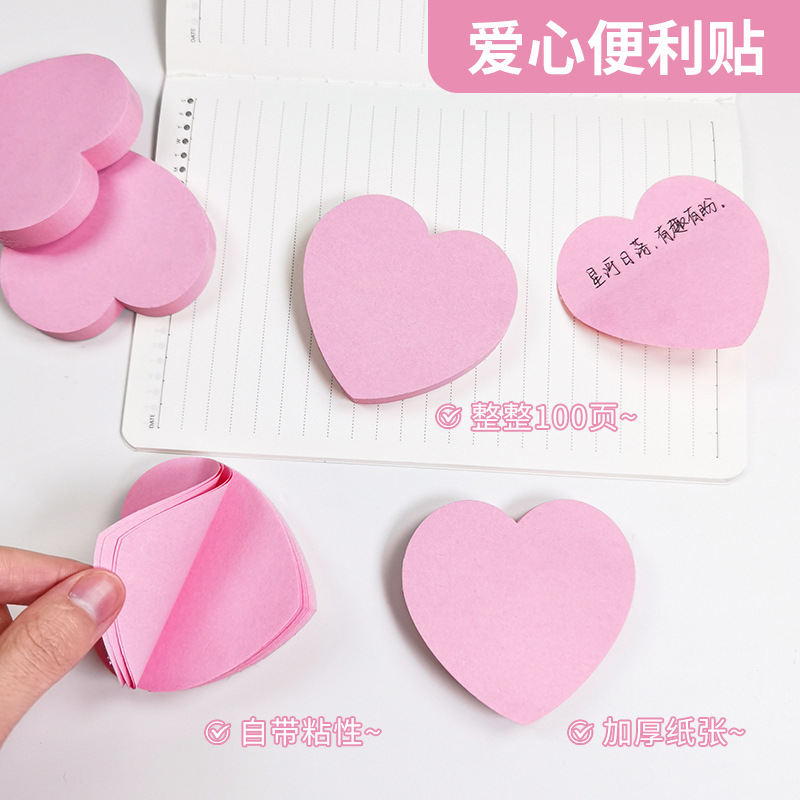 厂家批发粉色爱心便利贴100页花艺外卖N次贴可撕学生留言便签纸