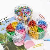 彩色大号小号混装回形针套装6色包塑曲别针桶装批发多规格回型针