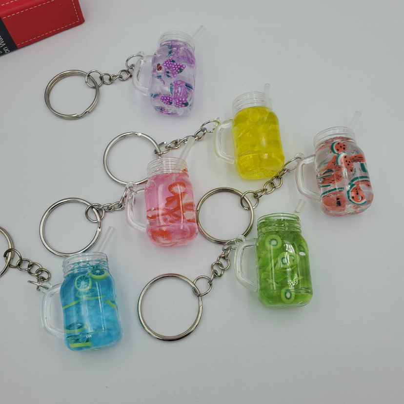 奶茶杯入油漂浮钥匙扣挂件