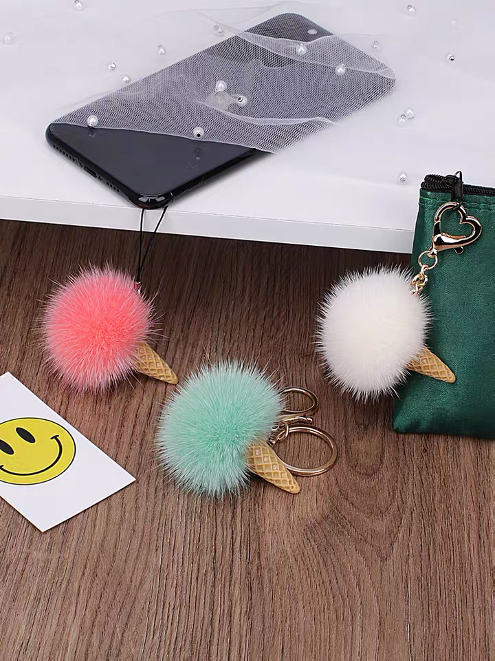 冰激凌毛球钥匙扣挂件