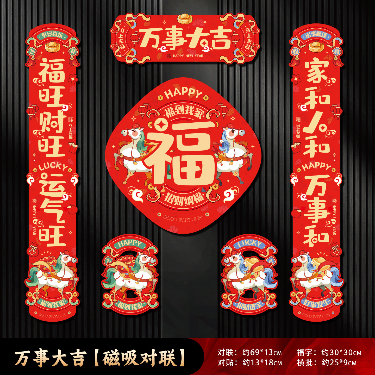 2026新款磁吸创意对联套装马年春联福字贴过年春节新年入户门装饰