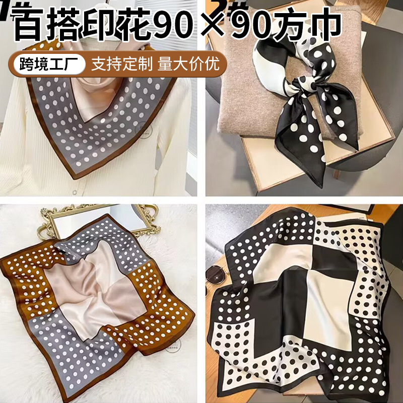 韩版时尚穿搭气质衬衫领巾百搭印花90*90cm波点方巾装饰发带批发
