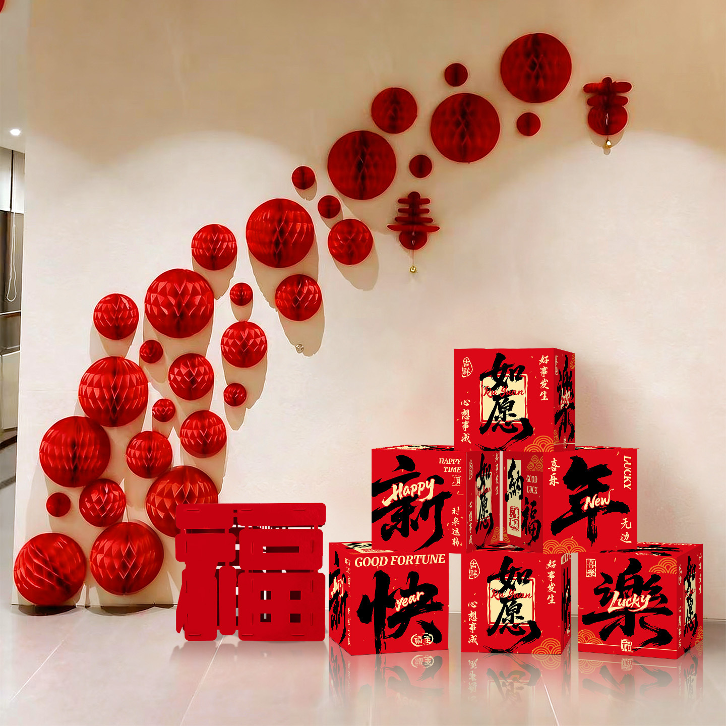 新年装饰品2026马年商场店铺场景布置蜂窝球过年客厅氛围地堆摆件