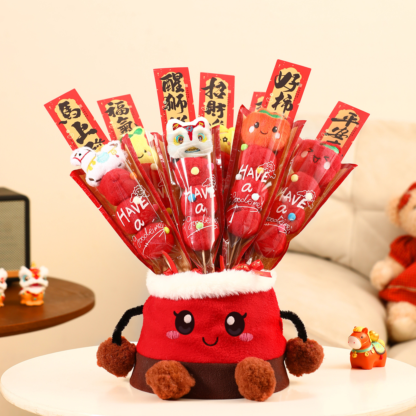 新年装饰品2026马年元旦毛绒糖葫芦拍照道具过年春节氛围布置摆件