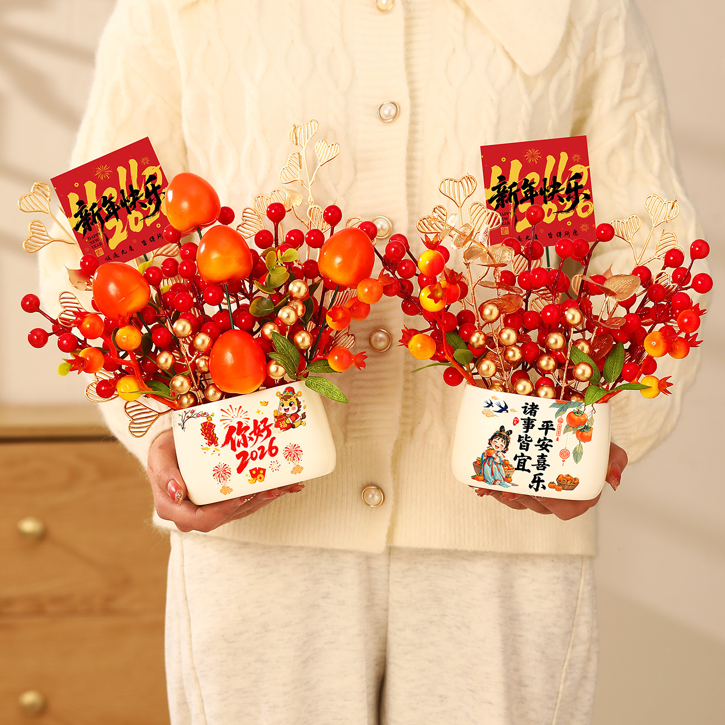 新年摆件2026元旦过年桌面气氛布置装饰马年春节柿柿如意创意桌摆