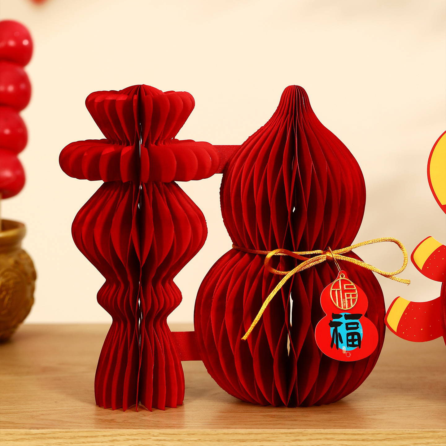新年挂饰2026过年氛围布置蜂窝球摆件马年春节客厅葫芦摆台装饰品