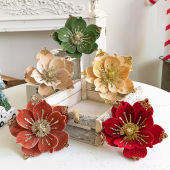 圣诞花绒布花金粉花仿真花一品红圣诞插枝圣诞树配件圣诞花环藤条