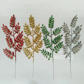 跨境圣诞金葱粉叶子瓜子叶塑料叶圣诞树顶装饰花仿真花绿植婚庆花
