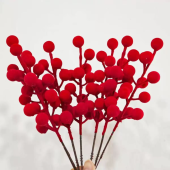 冬青果植绒12叉红果发财果圣诞红浆果新年福桶花材圣诞树装饰品