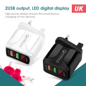 5V5.1A数显充电器 2USB数显快充充电器蝴蝶2U显示充电头跨境产品