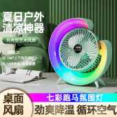 新款跨境彩色跑马灯风扇usb充电小风扇办公桌面学生宿舍台灯风扇