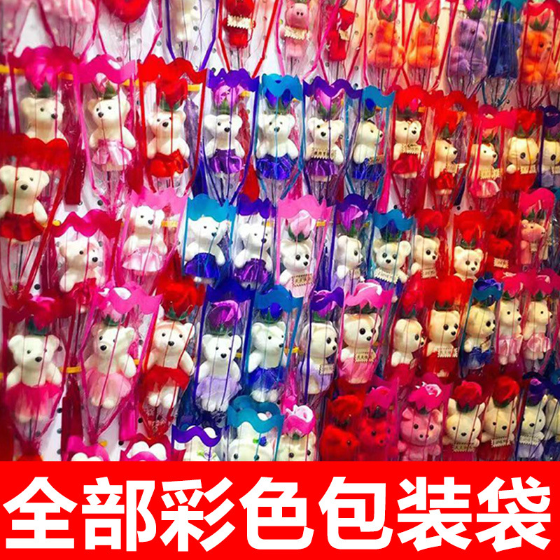 单支小熊玫瑰花香皂花批发地推扫码生日仿真肥皂花促销活动小奖品