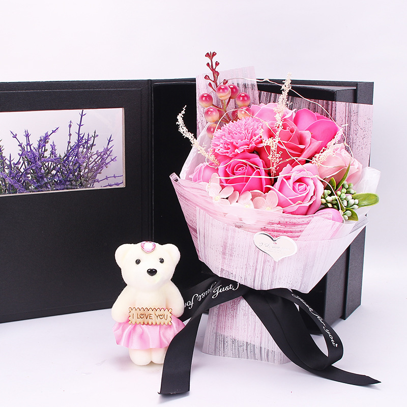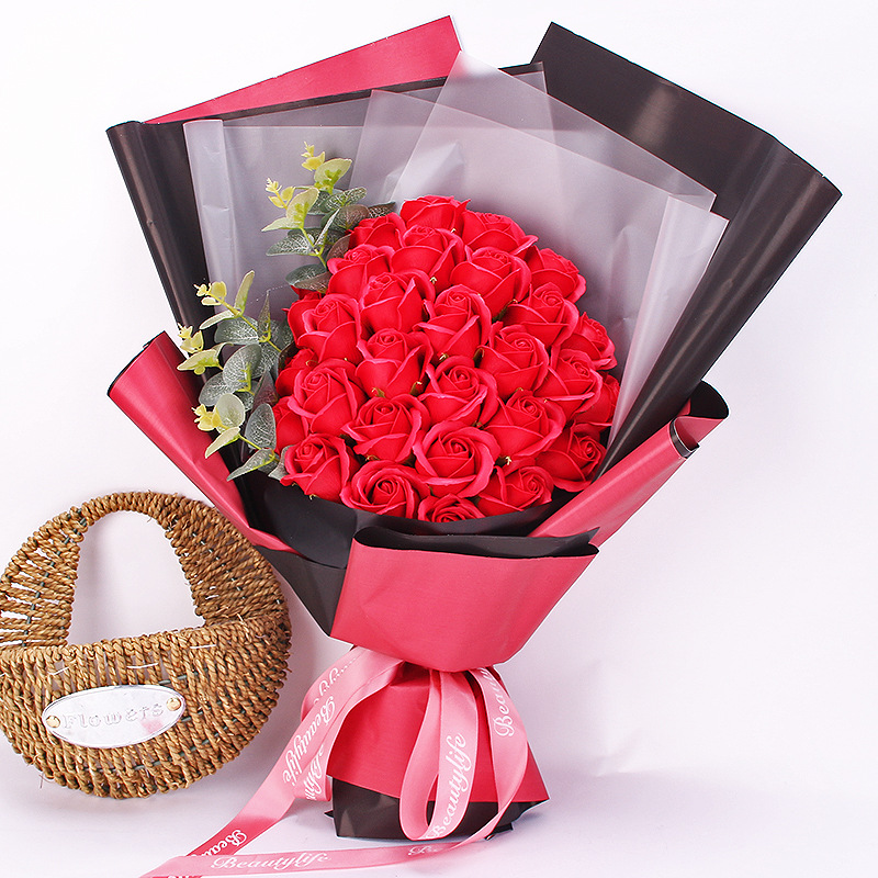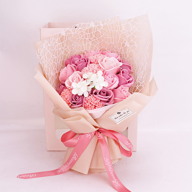 七夕情人节礼物18朵玫瑰香皂花束礼盒康乃馨跨境亚马逊创意礼品