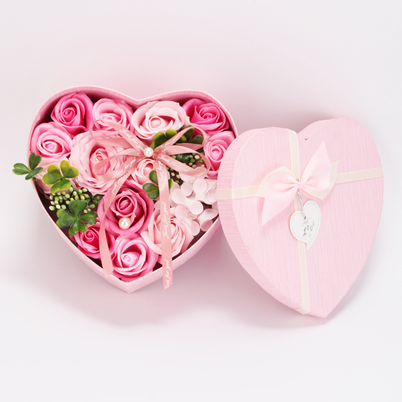 跨境货源七夕情人节教师节送客户心形玫瑰花礼盒香皂花创意礼物品