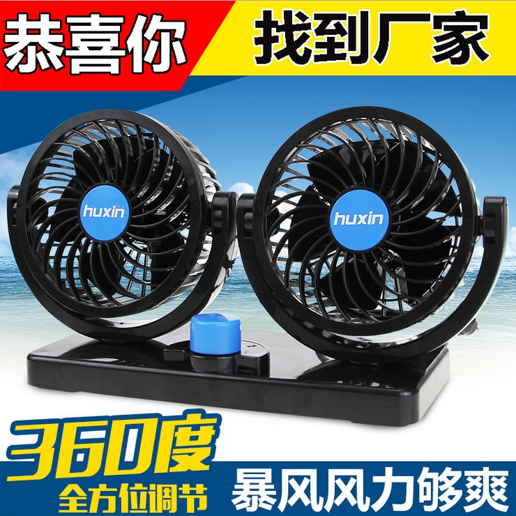 6寸双头车载风扇USB接口360度旋转汽车电风扇12V24V大货车风扇
