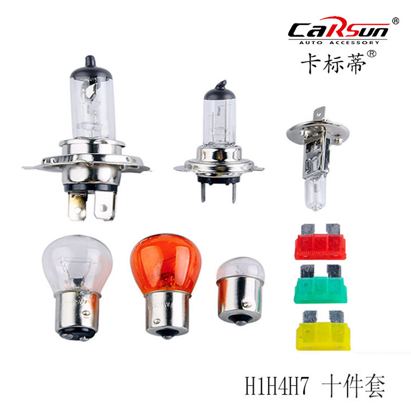 M盒硬料管汽车灯泡 卤素灯套装 前大灯 H1H3H4H7 M型塑盒对装